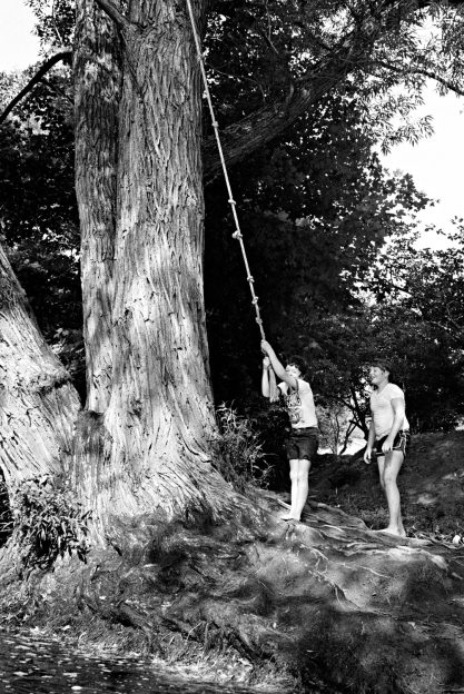 In the summer of 1979, three friends and I rented a small house in Lanesville, New York. We spent weekends and our summer vacations there. Occasionally, we drove in to Woodstock, but we spent most of our time walking along the Ashokan Reservoir and swimming at North Lake. The best day of the summer happened by chance. We had spent the morning and early afternoon checking out yard sales from Lanesville to Fleischmanns to Margaretville. Tired and hot, we had just stopped on the side of Route 28 when a young boy with a towel over his shoulder slowly bicycled by. I asked if he knew of a place to swim. He said “Yes, just follow me.” He led us down a narrow road to a giant tree overlooking a flowing creek. Another boy was there, holding on to a thick knotted rope tied to a large tree branch. He smiled at us, then swung out into the air, let go of the rope and landed in the water with a great splash. He popped up and waved us in. We followed as quickly as we could. The water was clear and cool and felt fantastic.