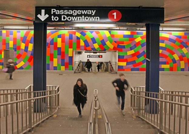 But for about ten minutes, when we were all together in the 59th Street station, my social dial was cranked all the way up. It had to be. Our overlapping debates competed with subway performers, the smell of piss and hot dog water, and a large, garish rainbow mosaic that I thought was a corny Sol LeWitt knockoff. I never mentioned that thought to anyone. I was often accused of being pretentious and was insecure about my diagnosis of the piece. But I didn’t like it.