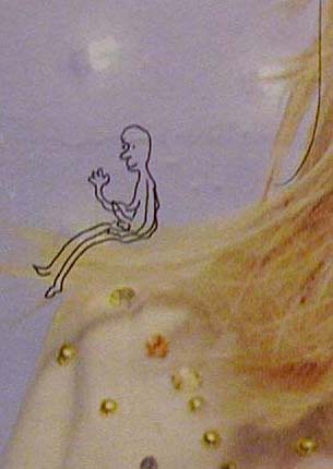 Speech bubble on breast reads: "Liberate me!"