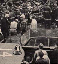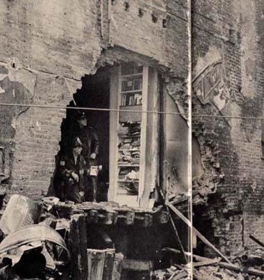 One day that week, an older couple and a child (later reported to be a student from a school in Michigan at which Diana Oughton once taught) placed some flowers on the rubble at Number 18, as if on a gravesite. The photographers, whose pictures had become stale with repetition, leaped into action. One of our upstairs neighbors was so outraged at the sight, at the thought of the bombers as martyrs, the blasted house as a memorial, that he charged through the police lines and angrily stamped the flowers into the ground. The police were astonished. They grabbed him and tried to arrest him. "One doesn’t do things like that," said one cop. Our friend answered, "One doesn’t blow up houses." And he walked away. He was never arrested, but curiously, the police took the crushed flowers into custody.