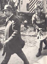From the beginning one of the great mysteries was the role of the police and the FBI. The night before it happened, around midnight, one Villager was walking up 12th Street and saw a police riot van pull up in front of 18 West 12th. Policemen jumped out and went into the house. When contacted, the police at first did not want to give information, then finally said a man had threatened his wife with a shotgun. But still the coincidence of the street numbers makes one wonder, could the police have been given a wrong tip?