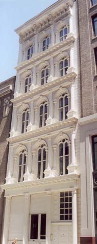 As James Sanders, co-writer of the New York documentary series recently put it, "Cast Iron architecture is one of New YorkÕs greatest architectural achievements and James Bogardus was the premiere architect of cast-iron architecture." Made from separate cast parts that could be ordered from catalogues and then bolted together on site, cast-iron construction marked the birth of pre-fab architecture.
